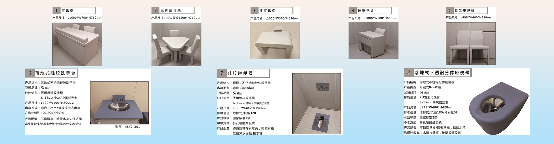 國內廣州為中心總廠,北京、成都、湖南、云南、黑龍江、內古蒙、海南等省城市公檢法單位大多都在使用我司產品建立辦案區留置中心,采用新型阻燃環保防撞軟包產品,軟包防撞家具,硅膠安全防撞潔具等。